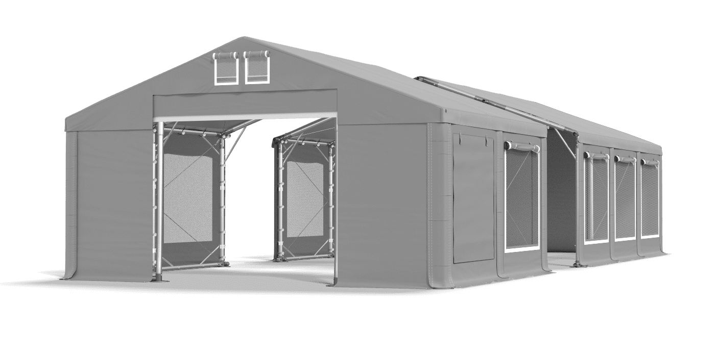 Wysokości w namiotach magazynowych oraz imprezowych mogą być szybko zmienione, a to dzięki modułowej konstrukcji, która pozwala na podniesienie namiotu o 0,5m lub o 1m. Najniższa możliwa wysokość ściany bocznej to 2m, a najwyższa to 4m.