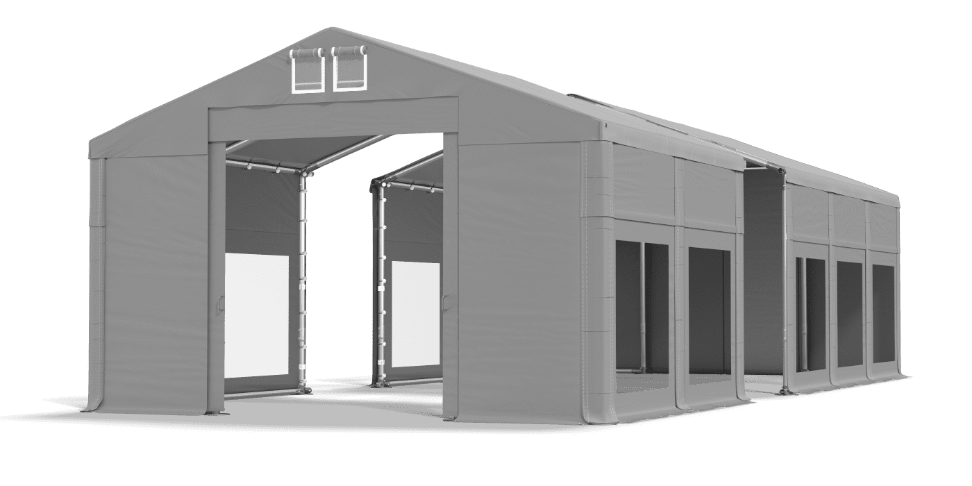 Wysokości w namiotach magazynowych oraz imprezowych mogą być szybko zmienione, a to dzięki modułowej konstrukcji, która pozwala na podniesienie namiotu o 0,5m lub o 1m. Najniższa możliwa wysokość ściany bocznej to 2m, a najwyższa to 4m.