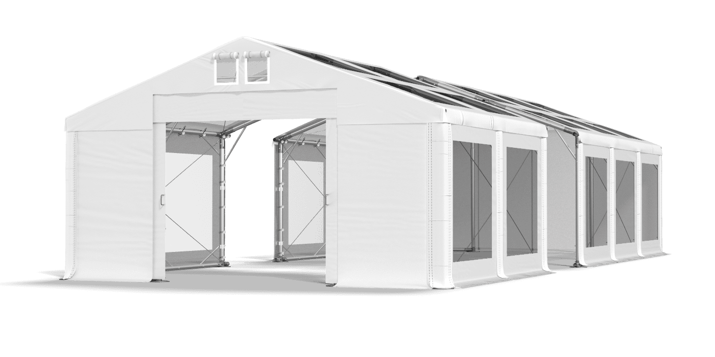 Wysokości w namiotach magazynowych oraz imprezowych mogą być szybko zmienione, a to dzięki modułowej konstrukcji, która pozwala na podniesienie namiotu o 0,5m lub o 1m. Najniższa możliwa wysokość ściany bocznej to 2m, a najwyższa to 4m.